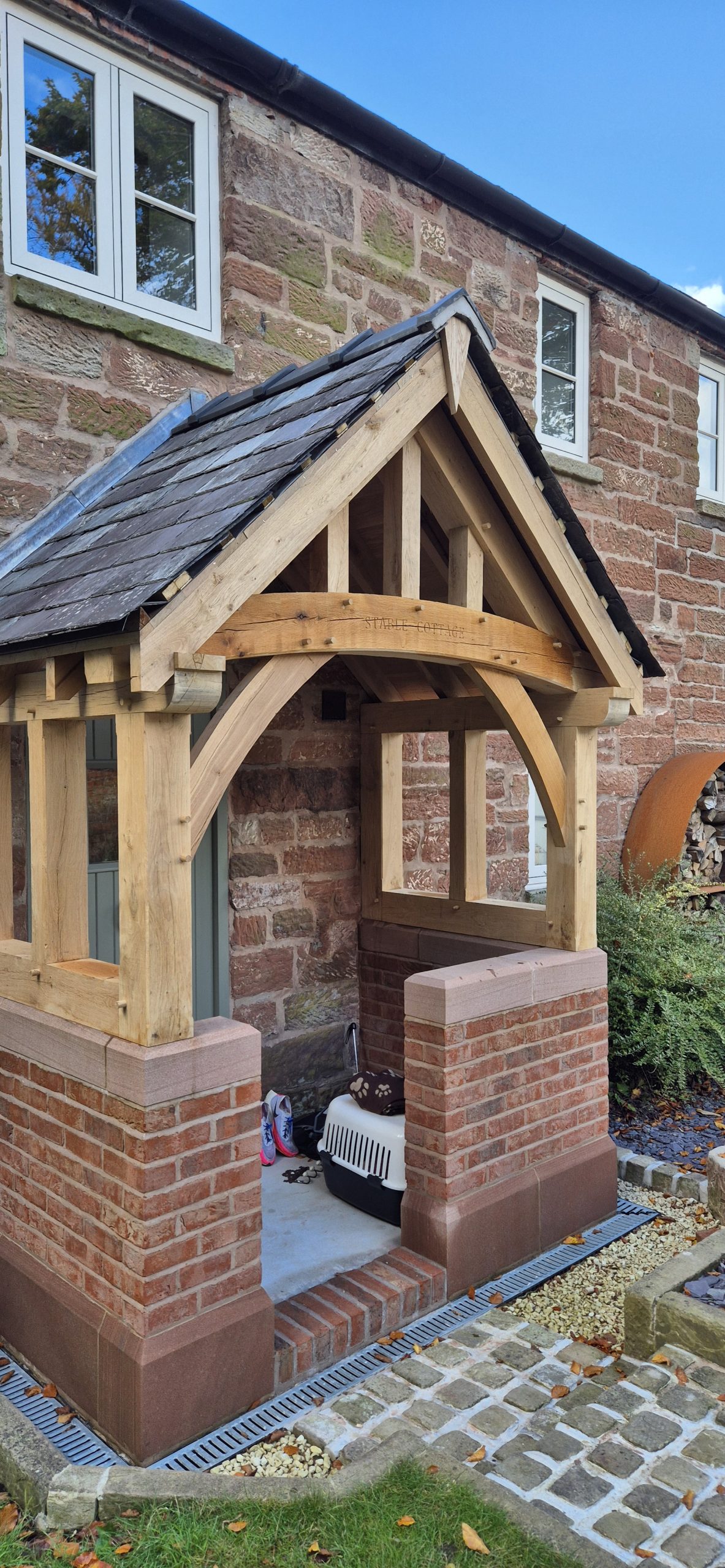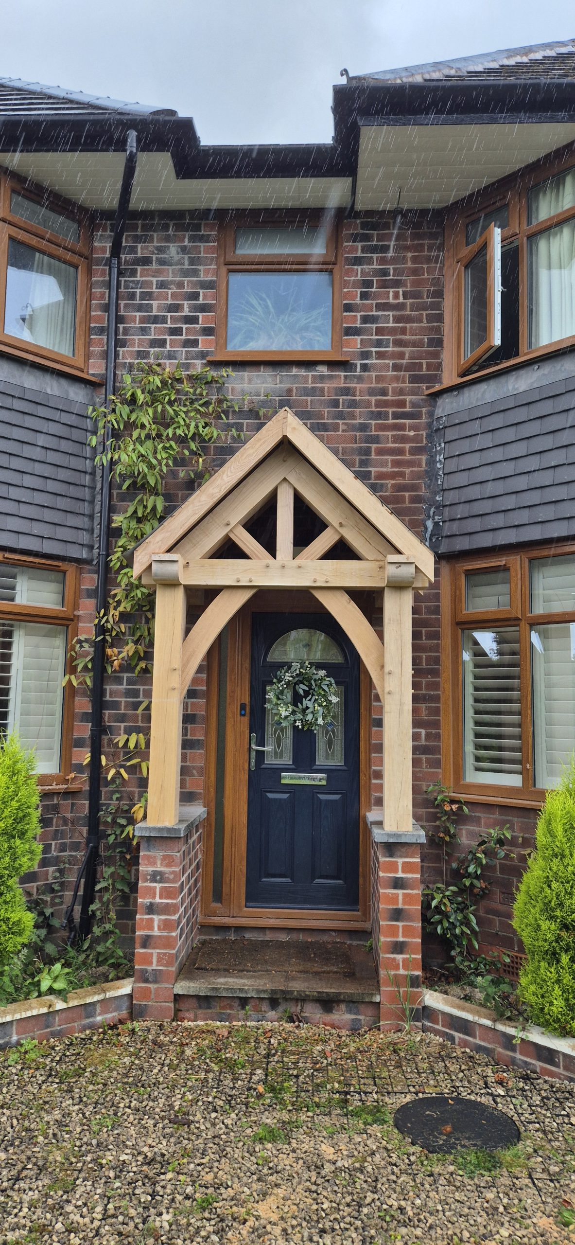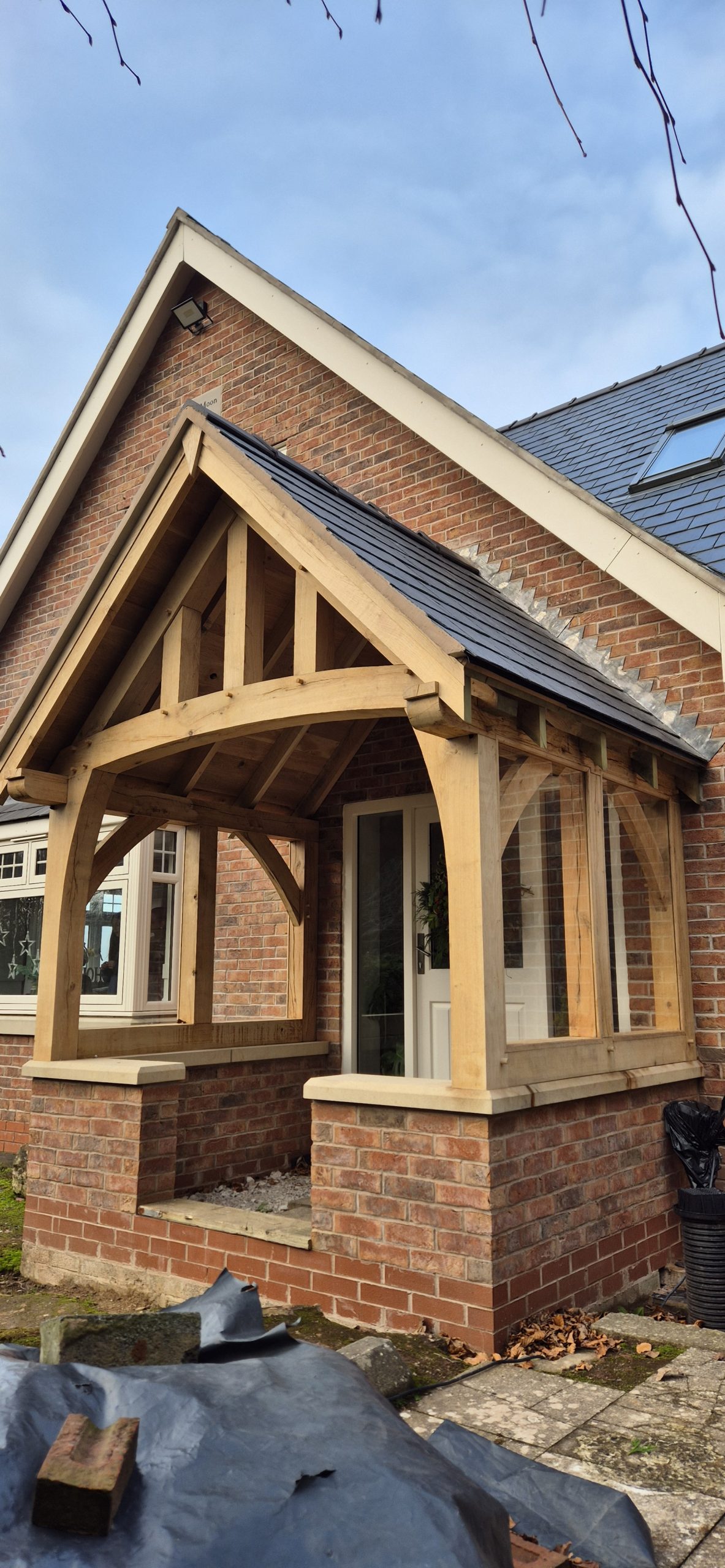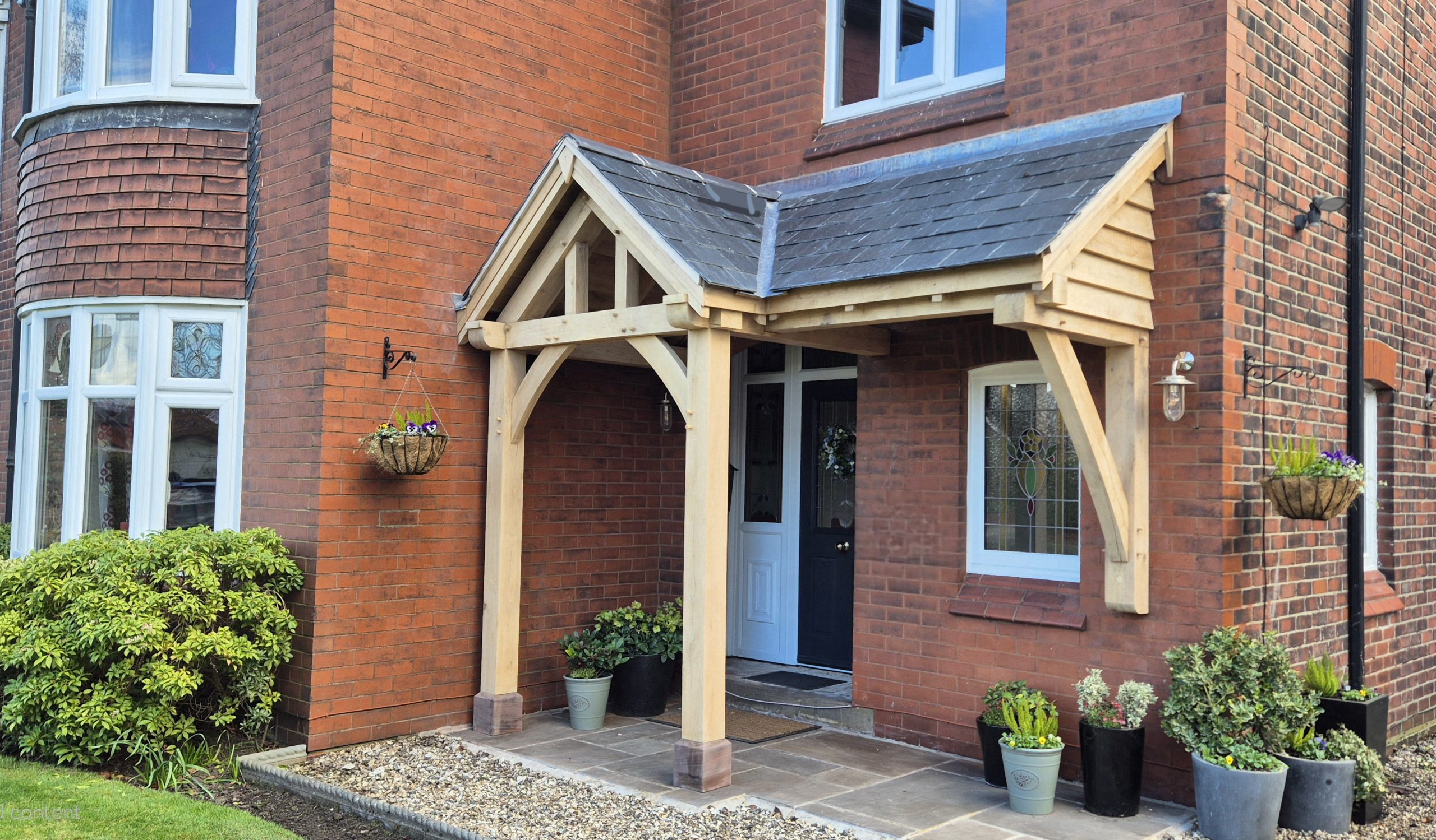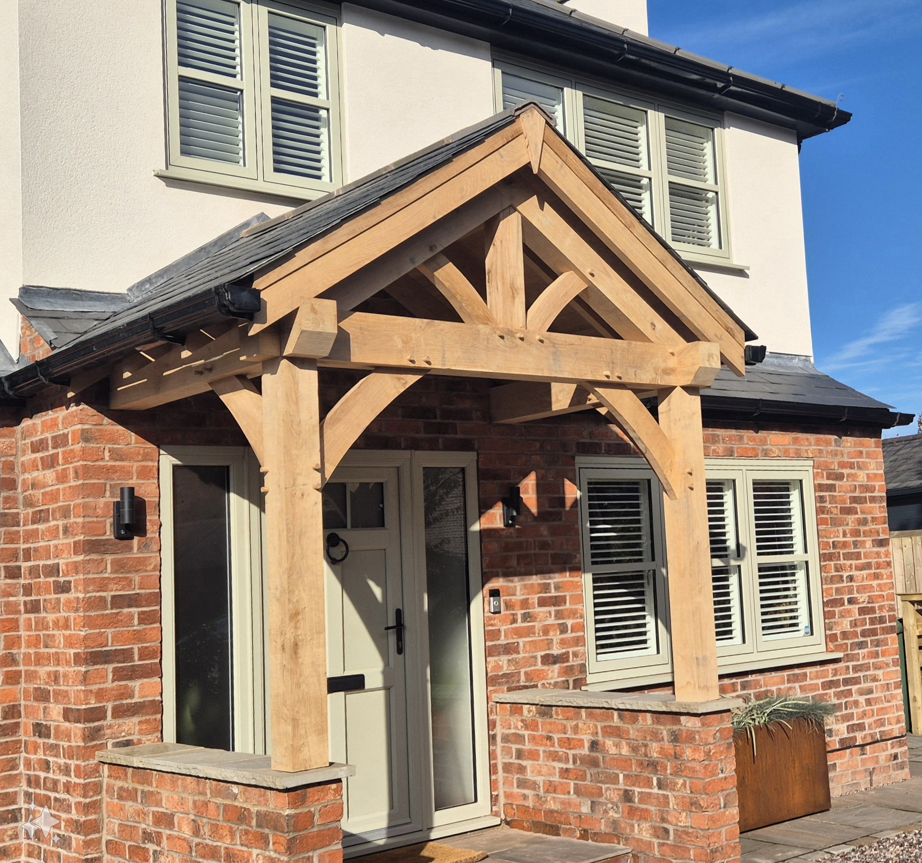 A porch is a real focal point on a house and the right porch design can really transform the entrance, whilst also providing much needed shelter from wind and rain. Each porch is bespoke and there is no fixed design ensuring it compliments the house and is proportionally right. They can contain a number of features such as trusses, purlins and oak rafters, while render panels or glazing can also be incorporated into the frame.